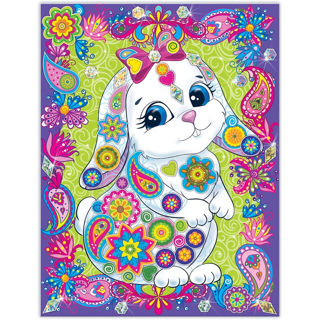 Волшебство техники "антистресс-декорирование стикерами" вовлекает в процесс творчества даже самых маленьких детей: ребёнок старше 3 лет вместе с мамой наклеит узорные разноцветные стикеры и блестящие голографические элементы на изображение трогательного зайчика на поляне среди волшебных цветов, и картинка заиграет яркими красками и радужными огоньками - прямо как в сказке!Размер готового изделия: 130х170 мм.Комплектация: цветные и голографические стикеры, картонный фон-картина, инструкция на упаковке.Не требует использования ножниц и клея.Рекомендуется детям старше 3-х лет.