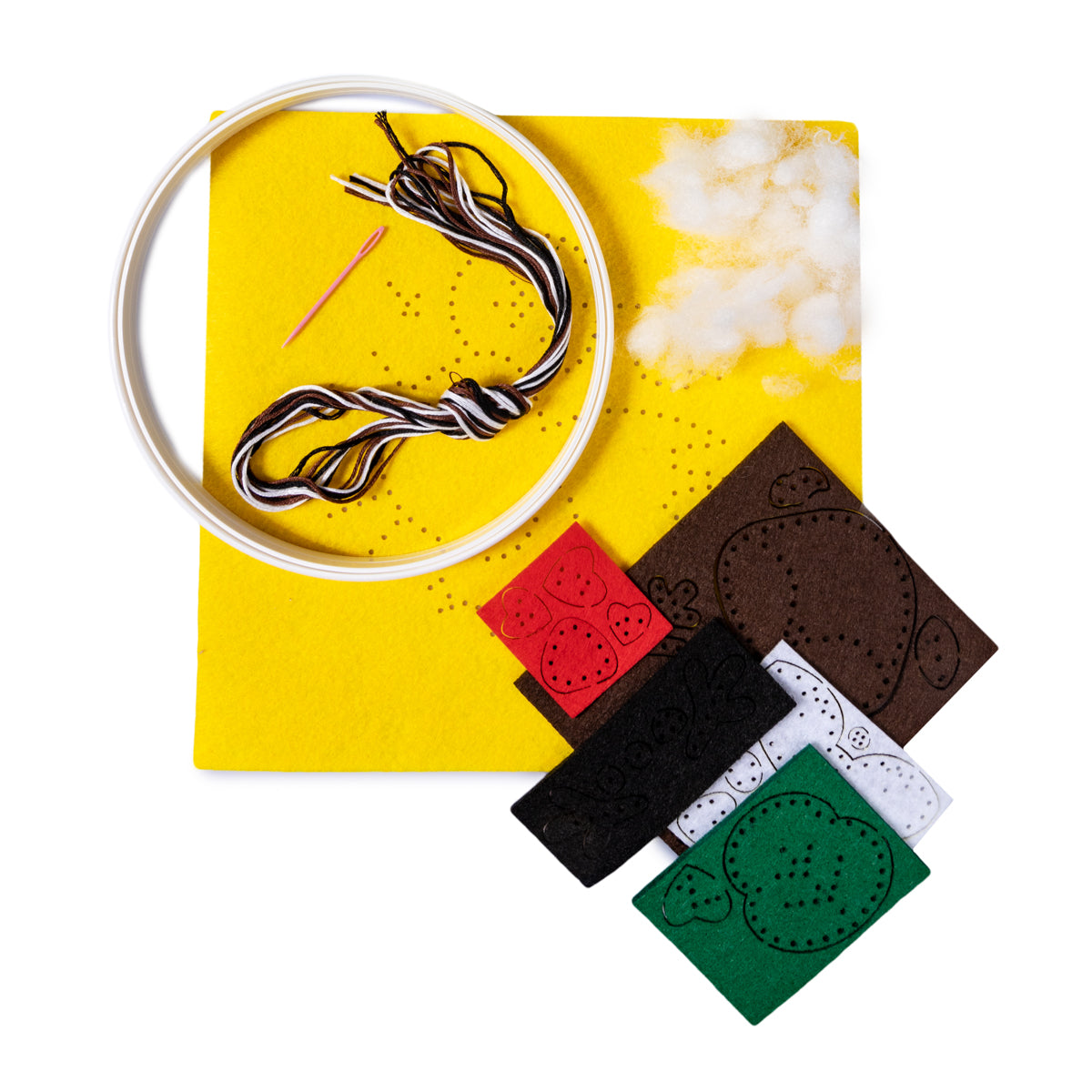 Панно из фетра на пяльцах «Оленёнок». Состав комплекта: Детали из текстильного материала с готовыми отверстиями для шитья – (размер оленёнка 8,5х12 см.), нитки (чёрный, белый, коричневый), безопасная пластиковая игла – 1 шт., пяльцы – 1 шт. (диаметр 15 см.), наполнитель в пакете – 1 упак.Материал: текстильные материалы, полимерные материалы. Для детей от 5 лет. Набор Панно из фетра на пяльцах «Оленёнок» развивает мелкую моторику, творческие способности ребенка, образное мышление, фантазию и чувство цвета.