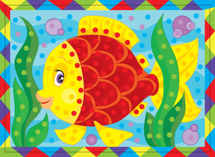 Рисунки со стразамиЕще красивая картинка со стразами - Рыбка. Ее можно взять за персонажа многих сказок и мультфильмов, но чтобы рыбка действительно стала золотой, надо раскрасить ее стразами. И тут как раз все просто - нужно выбрать стразы по цвету, отделить их от общего цветного блока и приклеить рисунок в соответствии с цветом. Стразы небольшие, около 6 мм в диаметре, блестящие, поэтому контроль со стороны необходим, и их можно положить во рту. Страза достаточно много, они идут с небольшим запасом, всего 182 штуки 5 цветов. Полученный блестящий результат украсит интерьер любой комнаты, будь то детская или игровая, а Ваш ребенок будет гордиться своим произведением. Рисунок со стразами «Рыбка» артикул 01648, как и остальные игры этой серии, развивают у детей творческие способности, усидчивость, внимание и мелкую моторику рук. И все это в игровой и непринужденной форме. Рисунок из страз «Рыбка», как и другие наборы этой серии, выпускаемые «Десятым королевством», можно купить во многих магазинах страны, а можно воспользоваться тем, что вы сейчас находитесь в интернет-магазине производителя этого товара, и сделать это по отпускной цене предприятием без каких-либо накруток с доставкой по России.