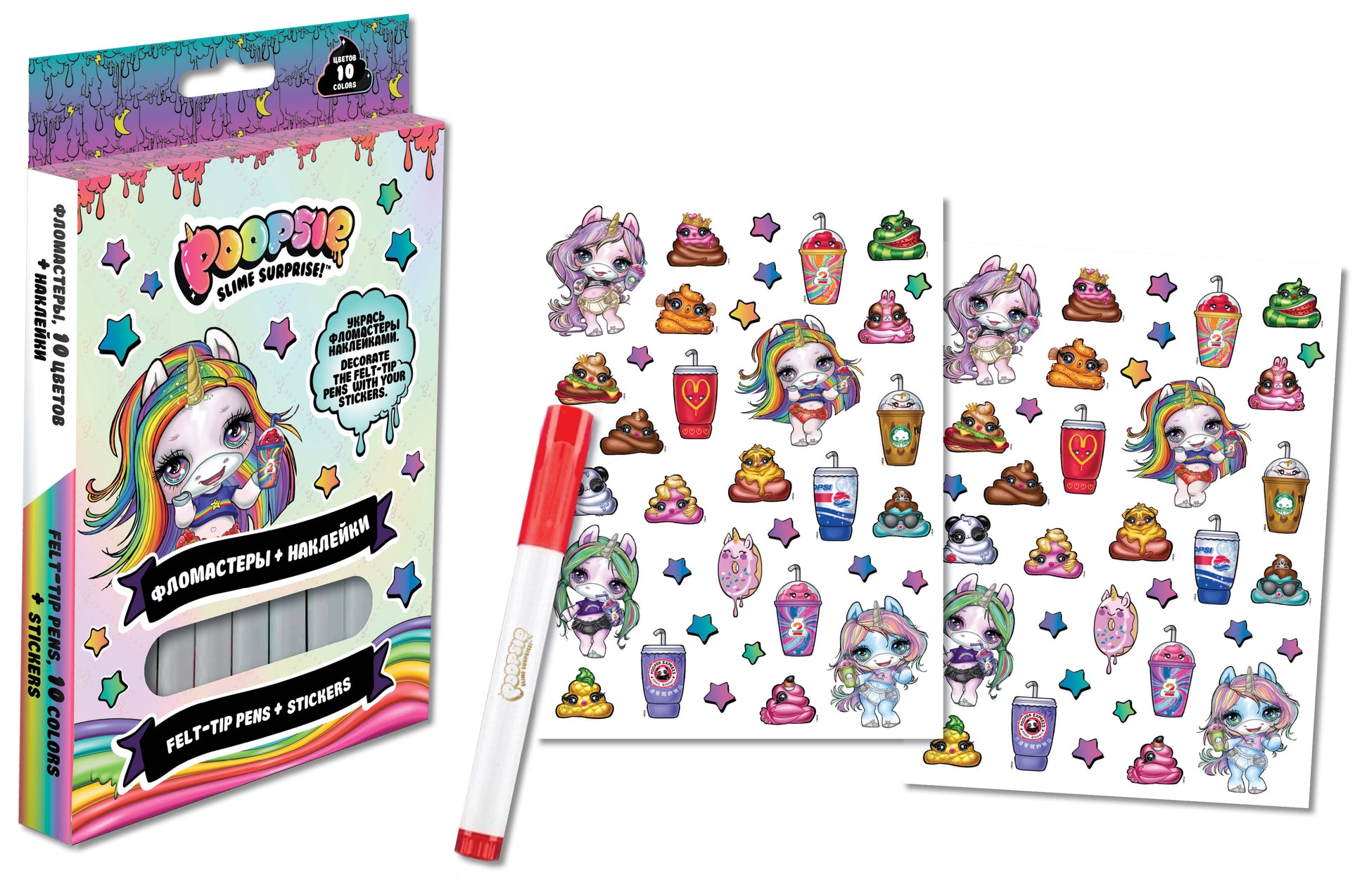 Набор для творчества Poopsie Фломастеры 10цв + наклейки 2 листа