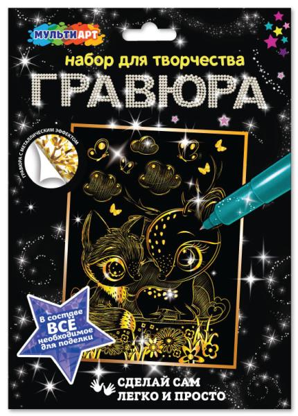 Набор д/дет тв-ва гравюра 10*15 см, олененок и лисенок, золотая МУЛЬТИ АРТ в кор.200шт