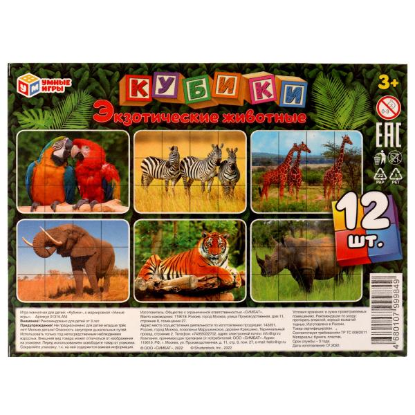 Набор из 12-и кубиков-пленка "Экзотические животные" ИГРАЕМ ВМЕСТЕ в кор.26наб