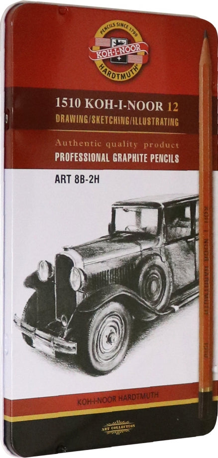 Роскошный набор легендарных желтых чернографитных карандашей KOH-I-NOOR из калифорнийского кедра в подарочной металлической коробке.12 градаций твердости от 8B до 10H, включая F, станет прекрасным подарком и источником вдохновения не только для профессиональных художников и графиков, но и для любителей, делающих первые шаги в рисовании.Твердость от 8B до 2H.Карандаши заточены, без ластика.Форма корпуса - шестигранная.Диаметр грифеля 2-2,5 мм.Диаметр корпуса 7 мм. Пять причин купить 1Любимый набор самых известных карандашей для всех творческих личностей. 2Самые востребованные твердости и мягкости грифеля. 3Цвет корпуса карандаша - цвет натурального калифорнийского кедра. 4Удобная металическая упаковка с секретным замком, предотврящающая поломку. 5Внутри каждой коробки на обратной стороне крышки эксклюзивные исторические факты.