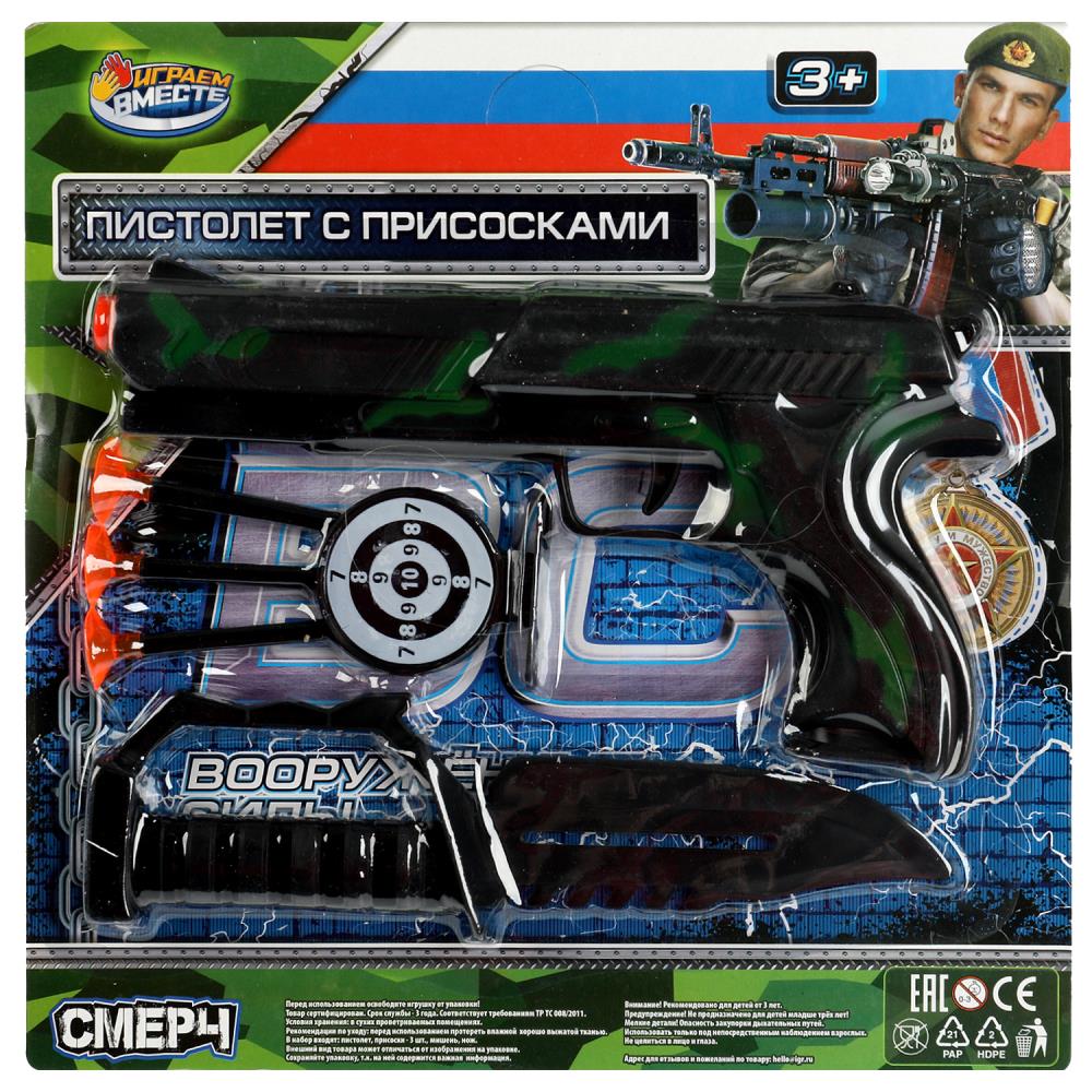 Набор оружия ВОЕННЫЙ пистолет с присосками, блист.28,5*28,5*4см ИГРАЕМ ВМЕСТЕ в кор.2*96шт