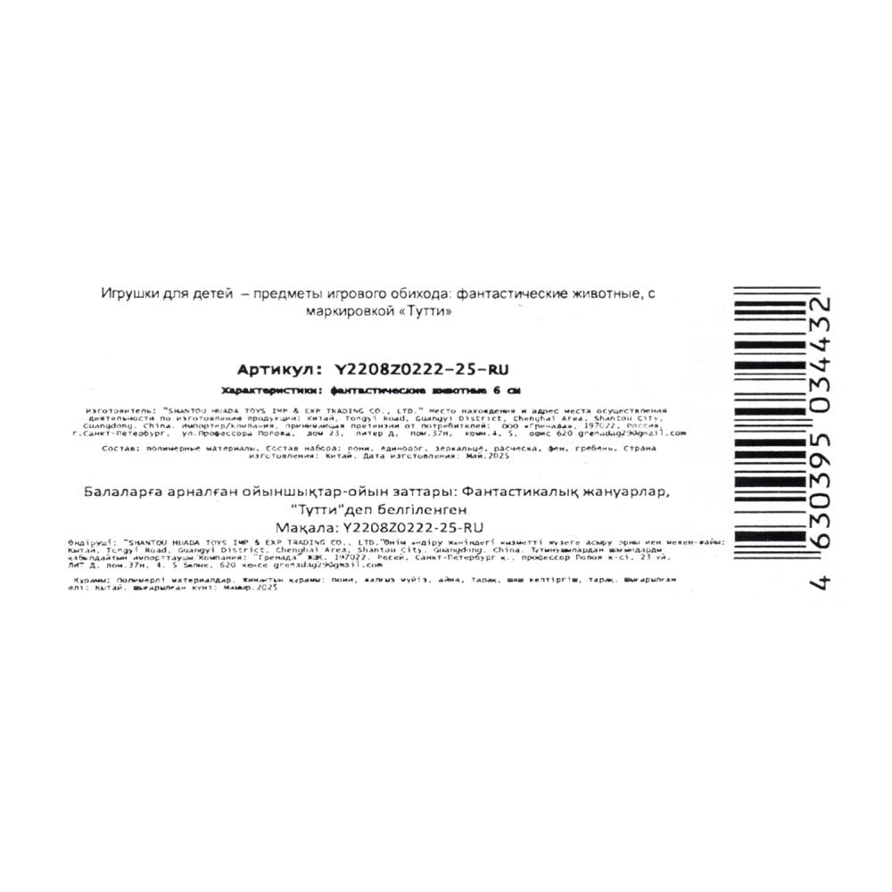 Игрушка "Набор пони пластиковых (6см и 6см), аксессуары 4шт, в блистере Тутти в кор.2*72наб". Размер: 0,29.