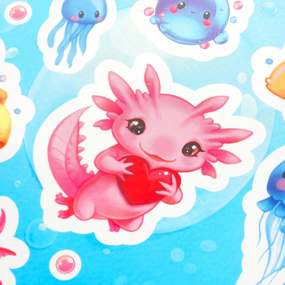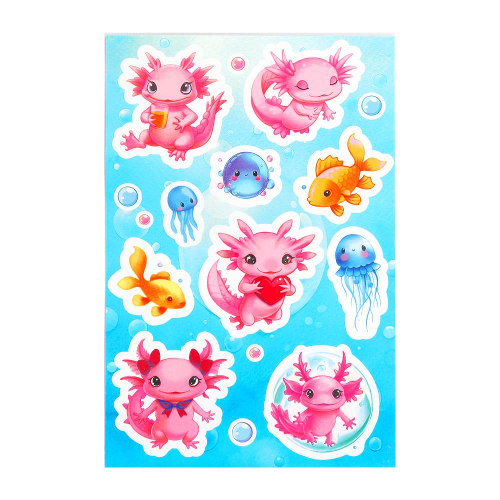 Игрушка "Наклейки бумажные 12х18 см, аксолотль МУЛЬТИ АРТ в кор.500шт". Размер: 0,039114.