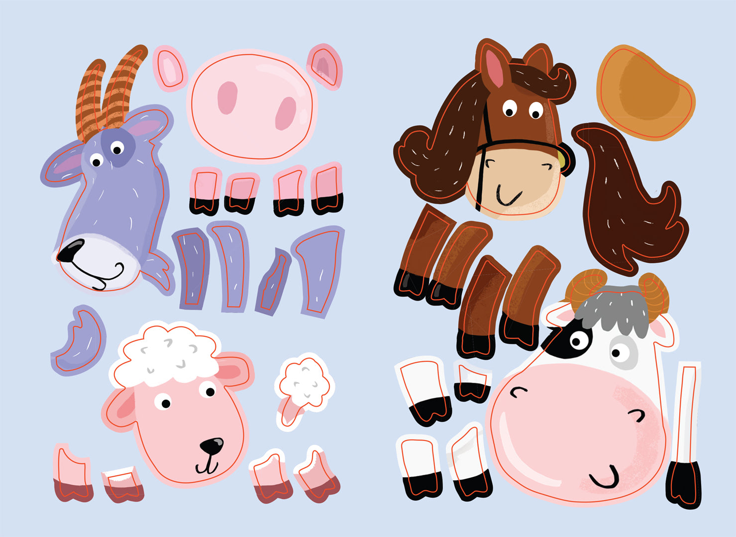 Наклейки с загадками. Собери по частям. В деревне