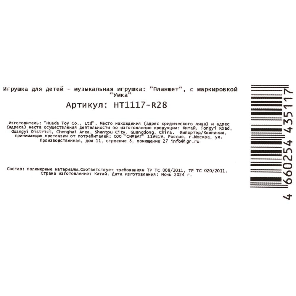 Игрушка "Обучающий планшетик.100+ стихов, песен и звуков. Маша и Медведь на блист. Умка в кор.96шт". Размер: 0,114.