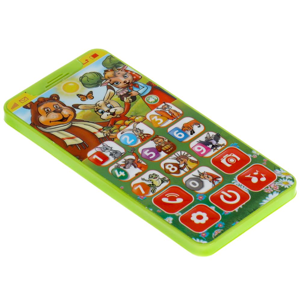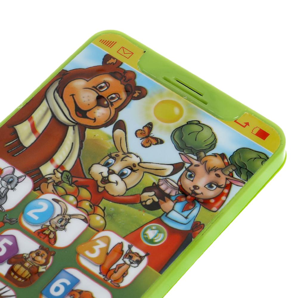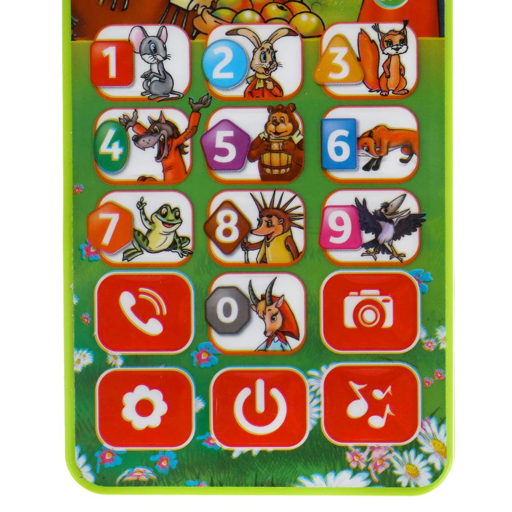 Обучающий телефончик со сказками В. Сутеева ТМ «УМка» непременно понравится малышу: - 3 сказки В. Сутеева: «Под грибом», «Три котёнка», «Кораблик». - 6 песен из м/ф: «Мир похож на цветной луг», «Всё мы делим пополам», «Облака», «Улыбка», «Чунга-Чанга», «Антошка». - голоса животных - звуки телефона - учим цифры и цвета - режим экзамена - кнопка «Вкл./Выкл.» - регулировка обзора Яркий телефон делает обучение малыша легким и интересным. Он с удовольствием будет нажимать на разноцветные кнопочки и слушать весёлые песенки, интересные сказки и звуки. В сложной игровой форме ребёнку будет легко выучить цифры, цвета и названия животных, а режим экзамена поможет проверить, как усвоились новые знания. Компактную игрушку удобно брать с собой. Обучающий телефон ТМ «УМка» разрабатывает: - память - слуховое восприятие и музыкальный слух. - тактильные навыки - визуальное восприятие - моторику Размер игрушки: 5 х 10 х 2 см. Материал: пластмасса. Работает от 3-х батареек типа ААА (в комплекте). Рекомендовано детям от 1 года.