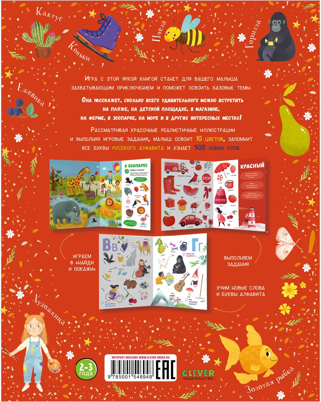 Handling time: 14 days Первая книга малыша. 500 слов. Найди и покажи «Это издание станет важнейшей книгой малыша уже с первого года жизни: в ней целых 500 новых слов, наглядные яркие иллюстрации и много веселых игровых заданий», — редактор Сlever. «Первая книга малыша. 500 слов» с красочными реалистичными иллюстрациями поможет быстро освоить 10 цветов, запомнить все буквы русского алфавита и узнать 500 новых понятий. И все это в формате любимой игры детей «Найди и покажи». Вам предстоят увлекательные задания: найти все съедобные предметы красного цвета, обнаружить все...