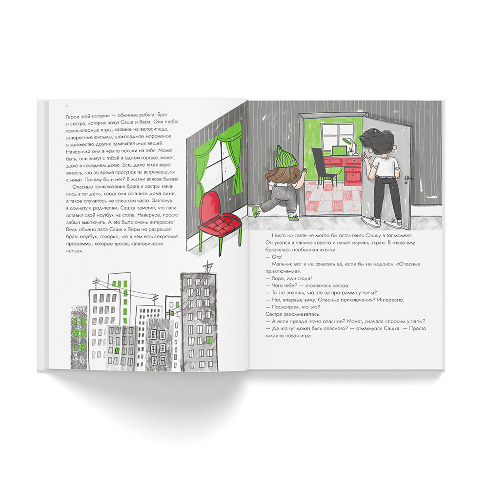 Две книги под одной обложкой.Когда Вера и Саша без разрешения залезли в папин ноутбук и включили игру с названием "Опасные приключения", они даже не подозревали, сколько испытаний их ждет впереди. В этих историях, они узнают, как одеться и что взять с собой в лес, что делать и что делать не нужно, если потерялся в лесной чаще, что предпринять, если оказался один на шумной городской площади и пытаешься найти тех, с кем пришел, и какой дорогой безопаснее всего добираться до дома вечером… Пять причин купить 1Книги о безопасности от популярного детского автора Юлии Ивановой, лауреата международного конкурса имени А. Н. Толстого. 2При создании проекта были использованы разработки организации #ШколаЛизаАлерт. 3Внутри книги — памятки с самыми важными правилами безопасности в лесу и городе. 4Захватывающий сюжет поможет детям с интересом изучить тему безопасности. 5Интересное издание: двусторонняя книга с плотной бумагой и яркими картинками.