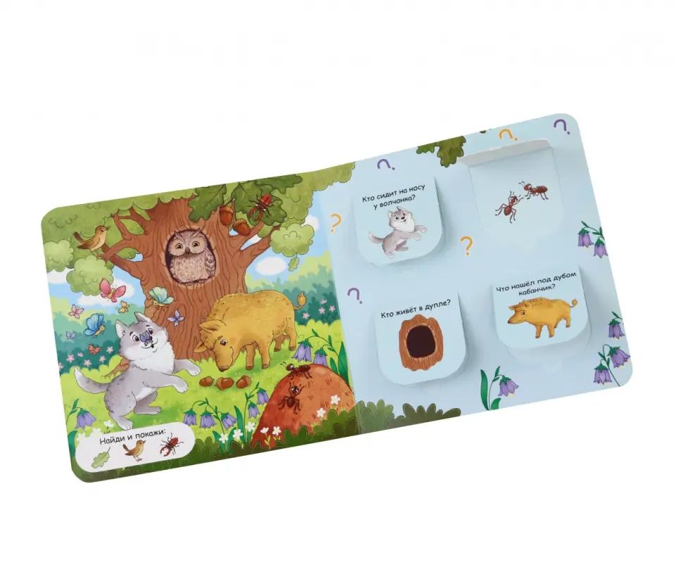 Эта познавательная обучающая книжка расскажет малышу о животных, которые живут в лесу. Заниматься по ней просто и интересно. Ребёнку нужно рассмотреть внимательно картинки и ответить на вопросы. А потом открыть окошки и проверить себя. А еще не забудьте найти на картинках заданные...Эта познавательная обучающая книжка расскажет малышу о животных, которые живут в лесу. Заниматься по ней просто и интересно. Ребёнку нужно рассмотреть внимательно картинки и ответить на вопросы. А потом открыть окошки и проверить себя. А еще не забудьте найти на картинках заданные предметы.Книга с окошками для детей до 3 лет.Эта познавательная обучающая книжка расскажет малышу о животных, которые живут в лесу. Заниматься по ней просто и интересно. Ребёнку нужно рассмотреть внимательно картинки и ответить на вопросы. А потом открыть окошки и проверить себя. А еще не забудьте найти на картинках заданные предметы.Книга с окошками для детей до 3 лет.