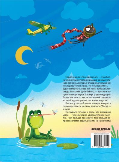 Серия книжек "Расскажи мне!" - это сборник понятных ответов на самые занимательные вопросы, которые будоражат умы юных исследователей мира. Не сомневайтесь - будет интересно, ведь все темы выбрал Александр Толмачёв (@detlektor) - детский популяризатор науки, блогер, радиоведущий. Более восьмисот тысяч читателей расширяют свой кругозор вместе с Александром!Готовы отправиться в захватывающее путешествие по живому миру и получить ответы на свои вопросы? Тогда - в путь!Но будьте готовы к тому, что познание мира - чрезвычайно увлекательное занятие. Чем больше вы знаете, тем больше вопросов хочется задать и найти на них ответы. Пять причин купить 1Соавтор Александр Толмачев @detlektor — известный детский популяризатор науки, радиоведущий, блогер (более 860 тыс. подписчиков), которого с удовольствием смотрят и слушают не только дети, но и взрослые. 2Познание мира — чрезвычайно увлекательное занятие. Чем больше знаете, тем больше вопросов хочется задать и найти на них вопросы. 3Раскрываются самые популярные темы среди почемучек 4Отличный подарок к любому событию: твердый переплет и высокое качество печати. 5Понятные ответы на сложные вопросы.