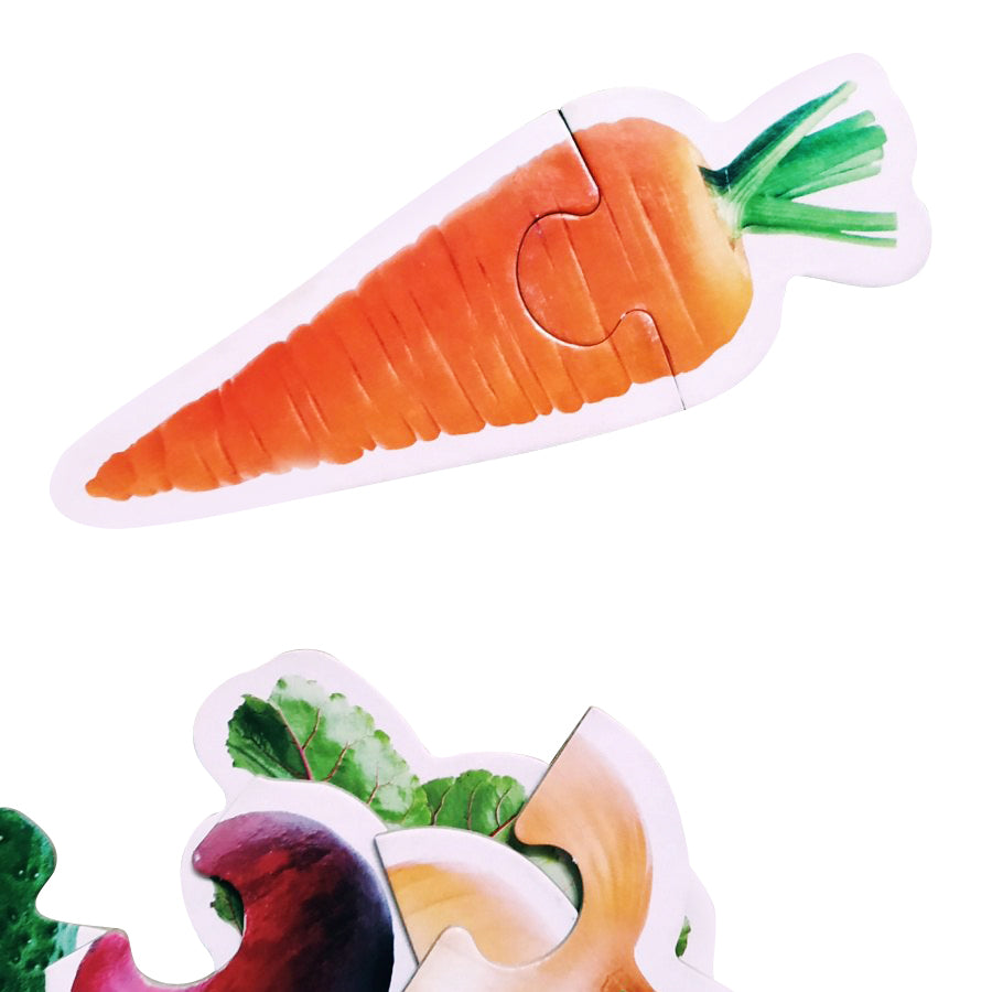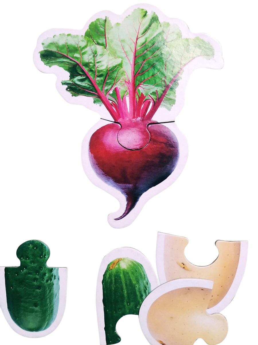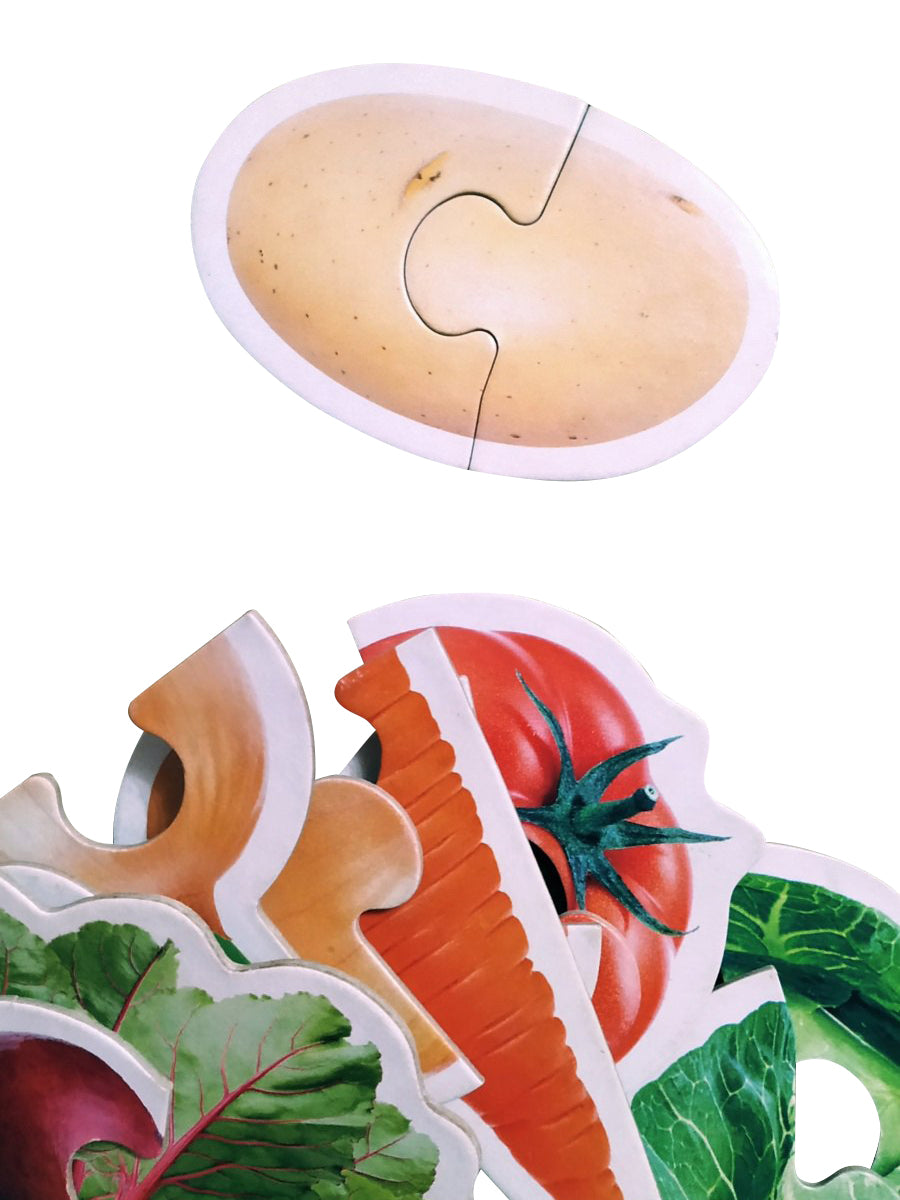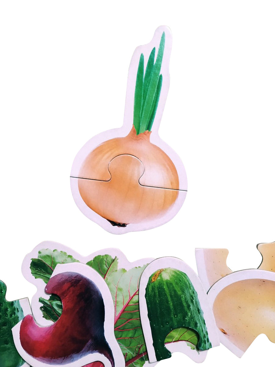 Макси-пазлы «Овощи» 15 элементов серии «Учись играя» – это увлекательная игра-головоломка, которая помогает вращать учение ребенка, пространственное мышление и память. Собирая пазлы, Ваш малыш научится терпению, усидчивости, уму концентрировать внимание. А реалистичные картинки помогают ему узнать, что такое овощи. Подключайтесь к игре, пусть ребенок собирает картинки, а вы подробно сообщите ему, что именно получилось на картинках. Спросите его рассказ. Игры для детей младшего возраста (3+). Крупные удобные элементы для ручки малыша. В коробке 7 контурных пазлов (помидор, капуста, морковь, лук, свекла, картошка и огурец). Шесть из них состоит из 2 частей, одна из 3 частей. Всего 15 элементов. Размер картинки, состоящей из трех частей примерно от 15 см, а состоящей из двух - от 9 см до 16 см. Пазлы изготовлены из плотного картона и имеют хорошую форму держателя. Чтобы они долго радовали вашего ребенка, необходимо соблюдать простое условие: не хранить во влажном помещении. Таким образом, ребенок лучше познает окружающий его мир.