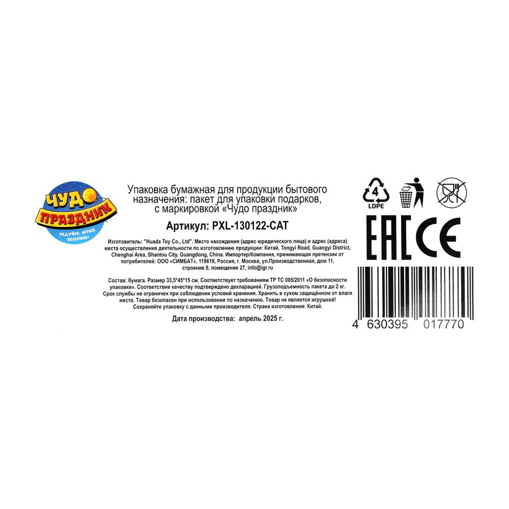 Игрушка "Пакет подарочный глянцевый xl,котенок,140 гр/м2 ЧУДО ПРАЗДНИК в кор.5*12шт". Размер: 0,026.