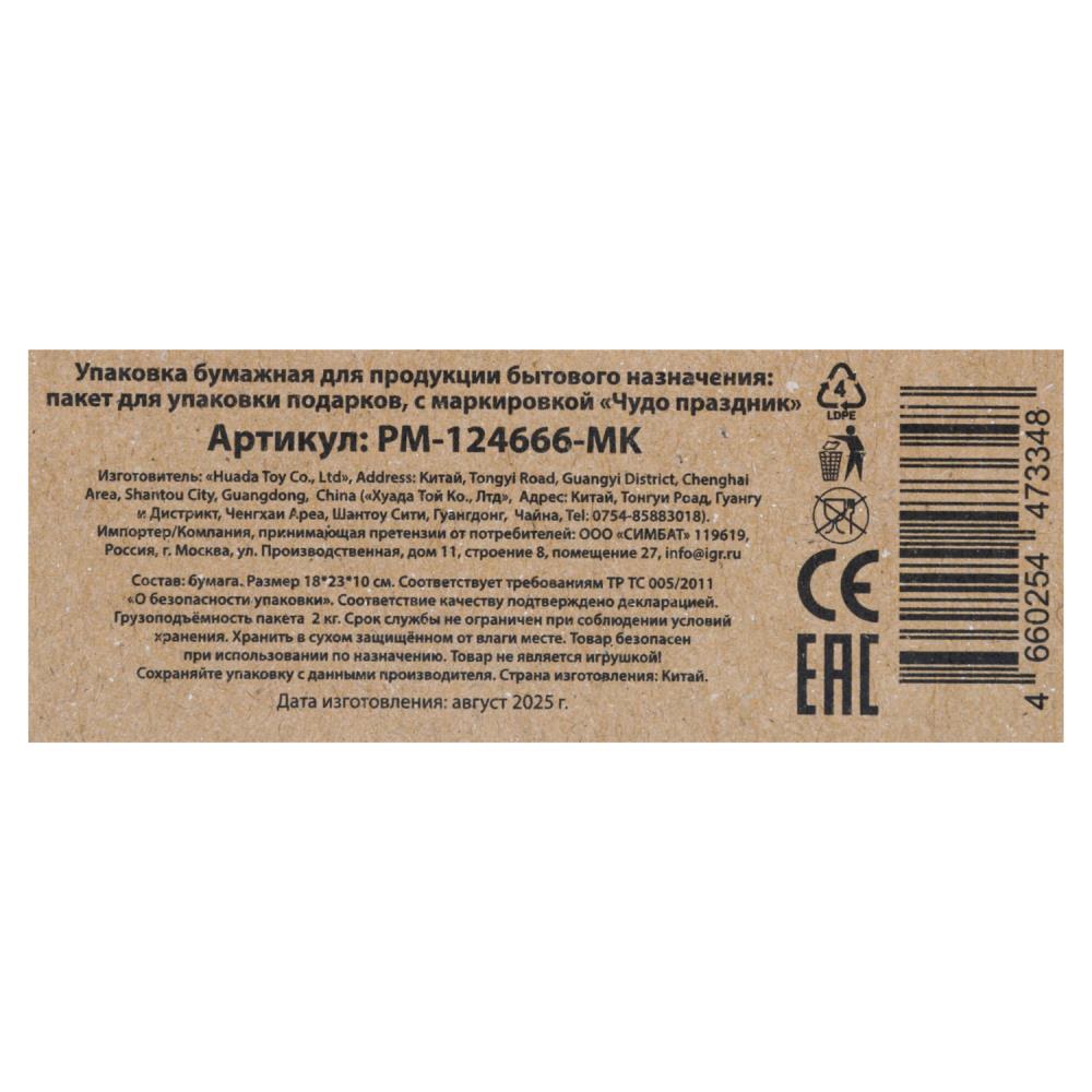 Игрушка "Пакет подарочный крафт м,мишка,140 гр/м2 ЧУДО ПРАЗДНИК в кор.12*12шт". Размер: 0,017.