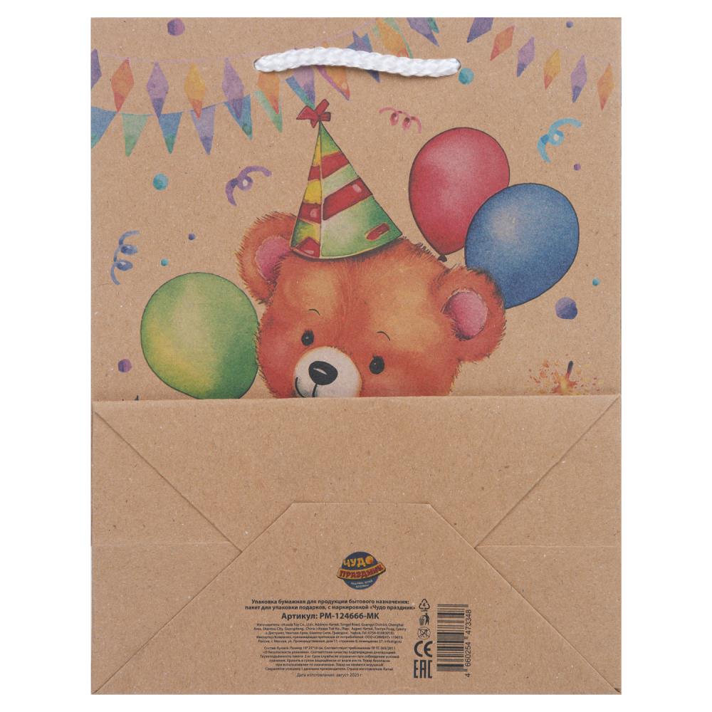 Пакет подарочный крафт м,мишка,140 гр/м2 ЧУДО ПРАЗДНИК в кор.12*12шт