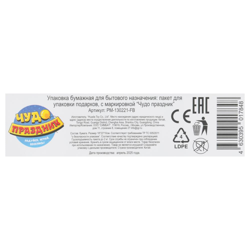 Игрушка "Пакет подарочный МАТОВЫЙ м,футбол,140 гр/м2 ЧУДО ПРАЗДНИК в кор.12*12шт". Размер: 0,017.