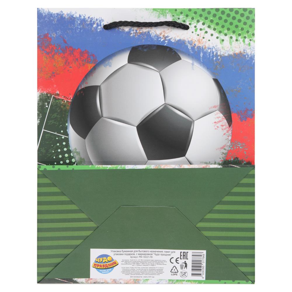 Пакет подарочный МАТОВЫЙ м,футбол,140 гр/м2 ЧУДО ПРАЗДНИК в кор.12*12шт