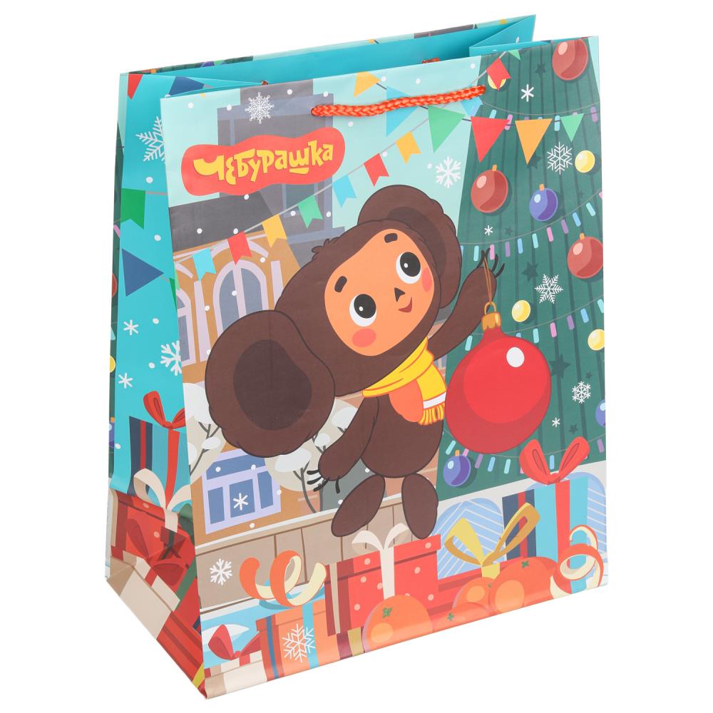 Пакет подарочный МАТОВЫЙ СОЮЗМУЛЬТФИЛЬМ l,Чебурашка новогодний,140 гр/м2 ЧУДО ПРАЗДНИК в кор.10*12шт