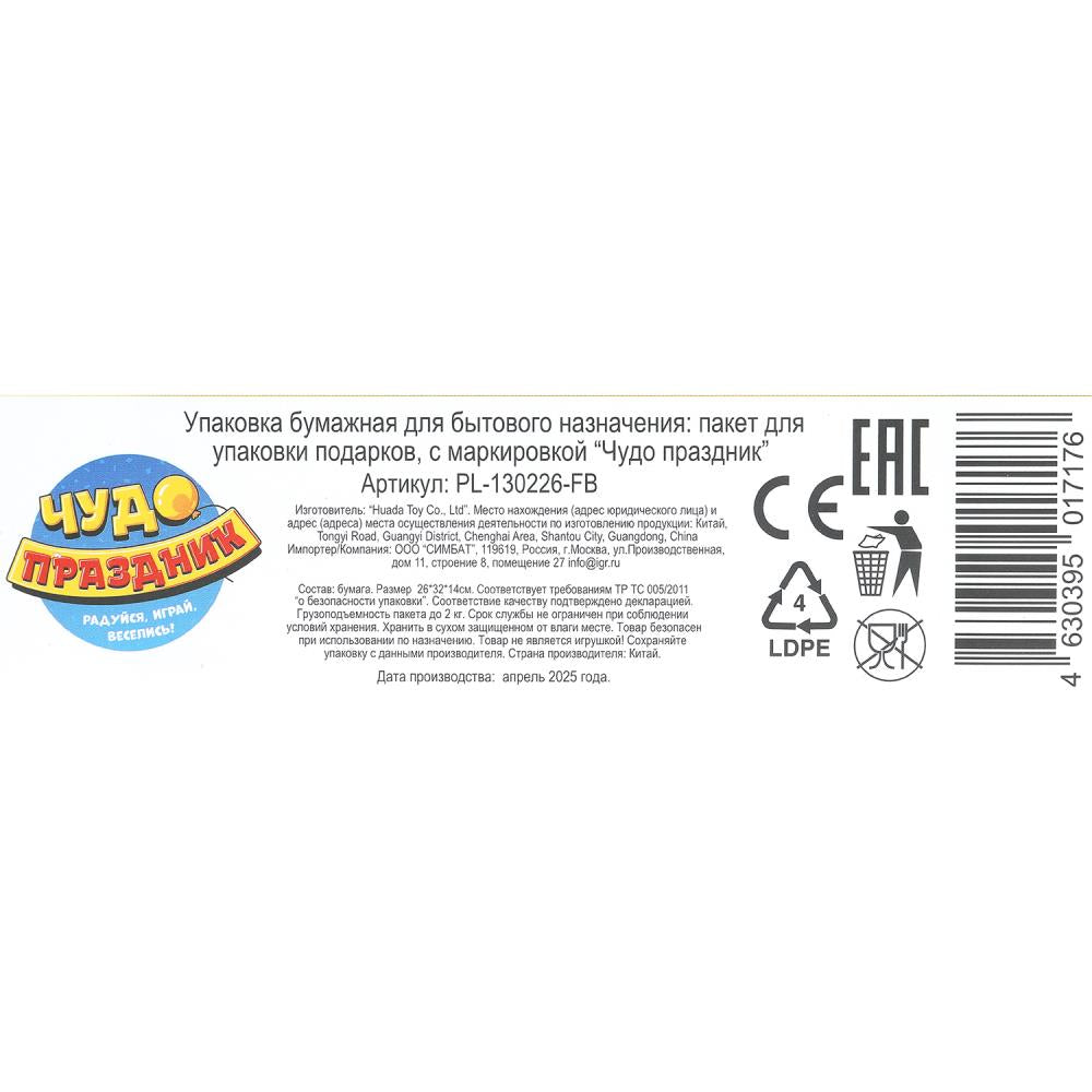 Игрушка "Пакет подарочный МАТОВЫЙ л,футбол,140 гр/м2 ЧУДО ПРАЗДНИК в кор.10*12шт". Размер: 0,025.