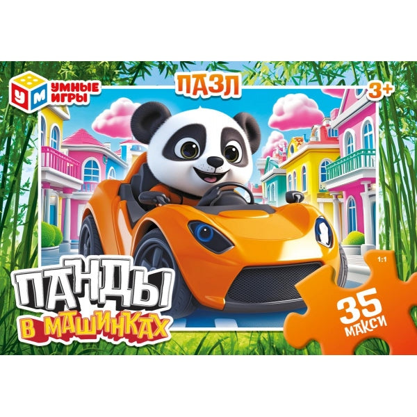 Панды в машинках. Макси-пазлы в коробке. Пазл 35 деталей. 180х127х35 мм. Умные игры в кор.24шт