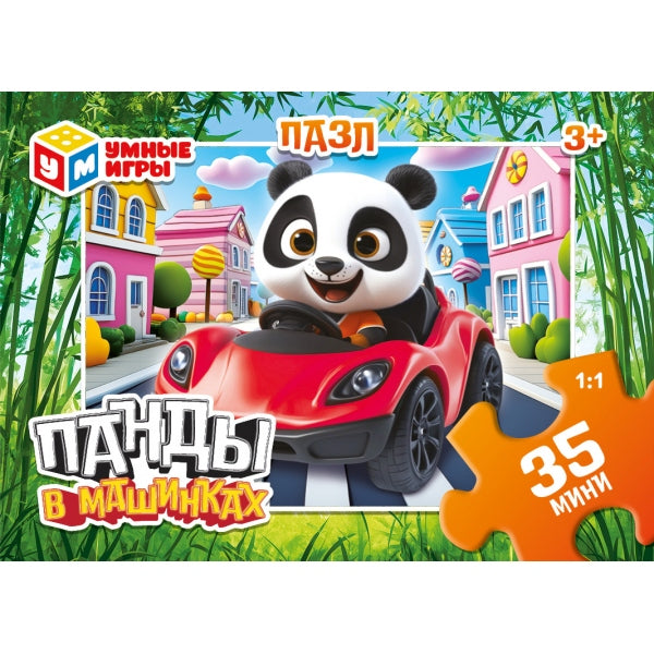 Панды в машинках. Пазлы в коробке 35 деталей. 90х65х25 мм. Умные игры в уп.32шт в кор.8уп