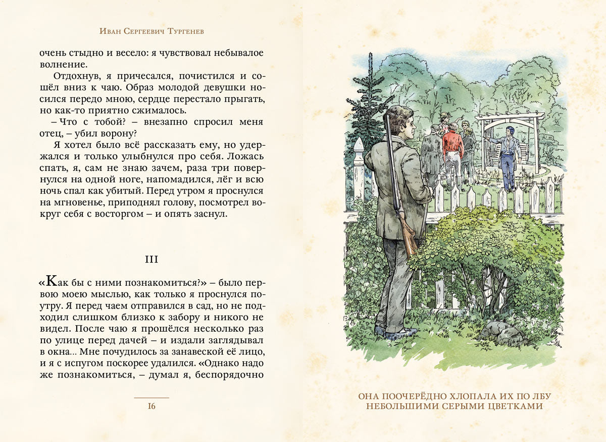 Handling time: 19 days "Первая любовь" Ивана Сергеевича Тургенева впервые опубликована в журнале "Библиотека для чтения" в 1860 году. Персонажи повести имеют прототипы из жизни писателя: это сам Иван Сергеевич, его первая любовь, Екатерина Львовна Шаховская, и его отец, Сергей Николаевич Тургенев. Тургенев не скрывал того, что сюжет повторяет его семейную историю и личные переживания: "В "Первой любви"… я изобразил своего отца. Меня многие за это осуждали, а в особенности осуждали за то, что я этого никогда не скрывал. Но я полагаю, что дурного в этом ничего нет. Скрывать мне нечего". Специально для нашего издания Николай Дятлов создал иллюстрации, в которых отражена беззаботная жизнь героев.Обложка с матовой ламинацией, ленточкой-ляссе.Для среднего школьного возраста.Книга издана в серии "Малая книга с историей". Оформление серийное, стилизовано под старину. Книга упакована в плёнку, обложка с матовой ламинацией, мелованная бумага, ленточка-ляссе.