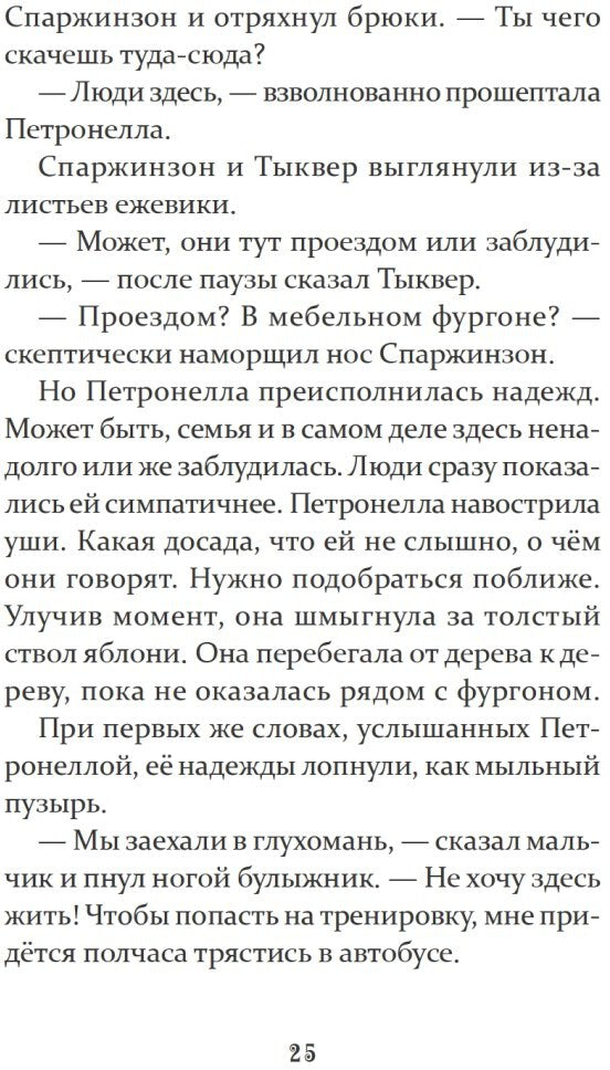 Handling time: 19 days Петронелла - не обычная ведьма, а добрая и веселая. И живет она не в какой-нибудь избушке в темном лесу, а в волшебном домике на яблоне, в центре фруктового сада, что неподалеку от мельницы. Та мельница много лет стояла без хозяина, пока в один прекрасный день в нее не вселилась целая семья, да какая шумная!Поначалу Петронелла ждала от новых соседей всевозможных бед, но как-то раз двое из новоселов явились к ней в гости и оказались симпатичными детишками! Это были мальчик Луис и его сестренка Лина. С первой встречи Петронелла и ребята понравились друг другу, а потом и подружились. Как раз вовремя, потому что без помощи доброй ведьмы Луису и Лине нечего было бы и мечтать выиграть важный конкурс, но это уже долгая история...Пять причин купить 1Добрая книга, которую можно читать одновременно детям разного возраста. 2Подходит для первого самостоятельного чтения. 3Волшебный мир книг про добрую ведьмочку Петронеллу поможет развить воображение ребенка. 4В книге поднимается тема взаимопонимания со всеми, кто нас окружает. 5Вместе с Петронеллой дети научатся готовить вкусный яблочный пирог.