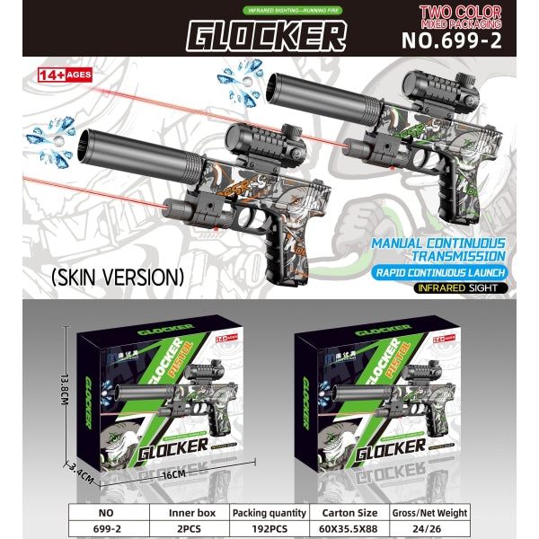 Пистолет с гелевыми пулями, с лазером. и оптич. прицелом в кор. в кор.2*96шт