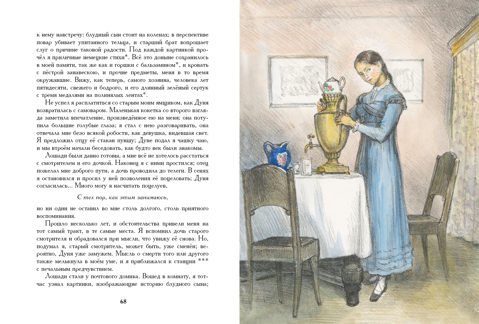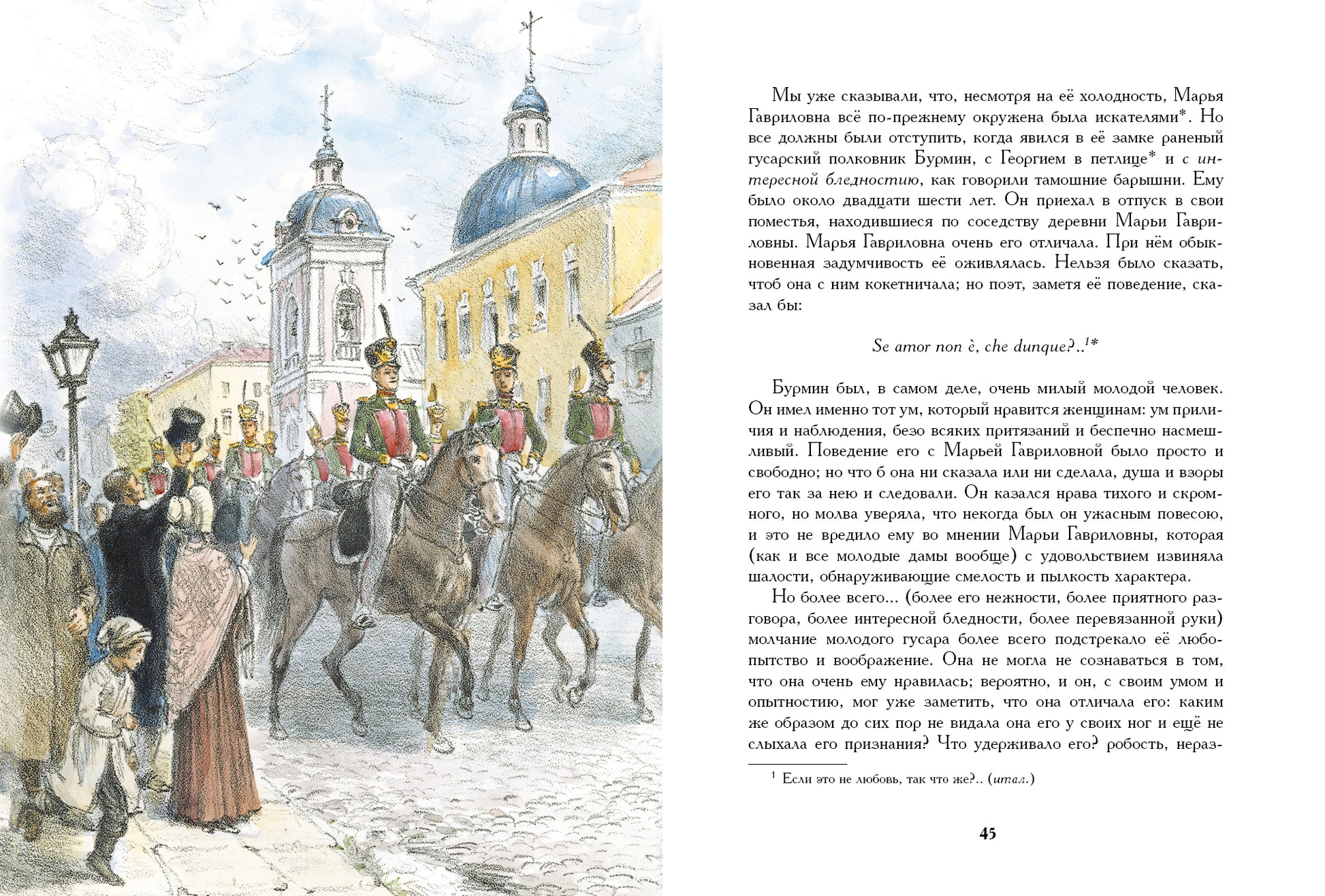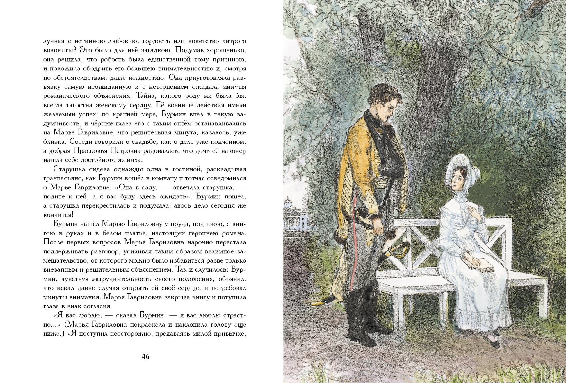 Handling time: 24 days Цикл повестей А. С. Пушкина “Повести покойного Ивана Петровича Белкина” - литературная мистификация. Автор прячется за именем выдуманного помещика Белкина, который якобы публикует записанные им истории из жизни. Такой прием позволяет Пушкину создать иллюзию действительности. Читатель верит и мистическому рассказу гробовщика, и любовной драме в “Метели”; сопереживает станционному смотрителю и героям повести “Выстрел”; с интересом следит за романтическими коллизиями в “Барышне-крестьянке”. Текст печатается без сокращений и сопровождается примечаниями. Издание отличает твердый переплет, белая офсетная бумага, крупный шрифт.