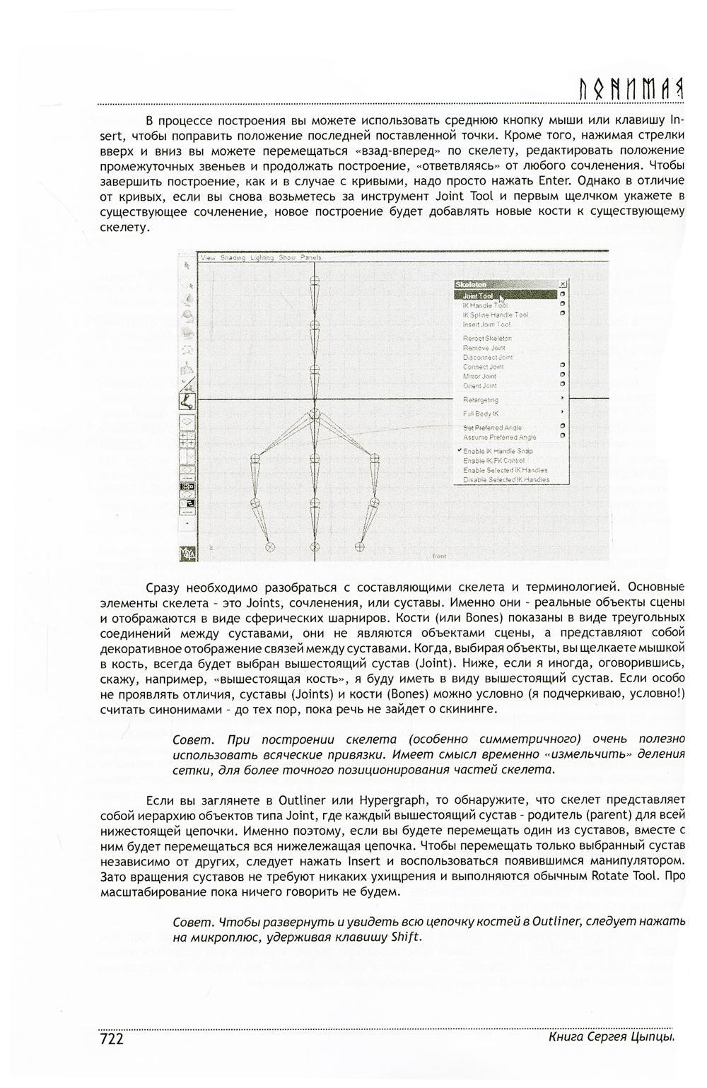 Handling time: 19 days Автор: Цыпцын С., «Понимая MAYA. Кн. 2»: Эта книга не о том, "как" сделать красиво и не от том, как освоить программу за 21 день. Эта книга о понимании принципов, по которым работает MAYA. Автор, выпускник мехмата МГУ, соединил академический научный подход и легкий стиль изложения. Среди прикладной литературы, посвященной компьютерным программам, эта книга является совершенно уникальной, так как призывает читателя вникнуть в саму суть построения программы и понять логику использования ее инструментов. Автор, является официальным российским "проповедником" MAYA, а также единственным в России сертифицированным инструктором компании Autodesk по этому пакету. Материал построен на основе семилетнего цикла лекций, прочитанных автором, и является предельно субъективным и неформальным. В подготовке книги автору помогали лучшие специалисты отечественной индустрии компьютерной графики.