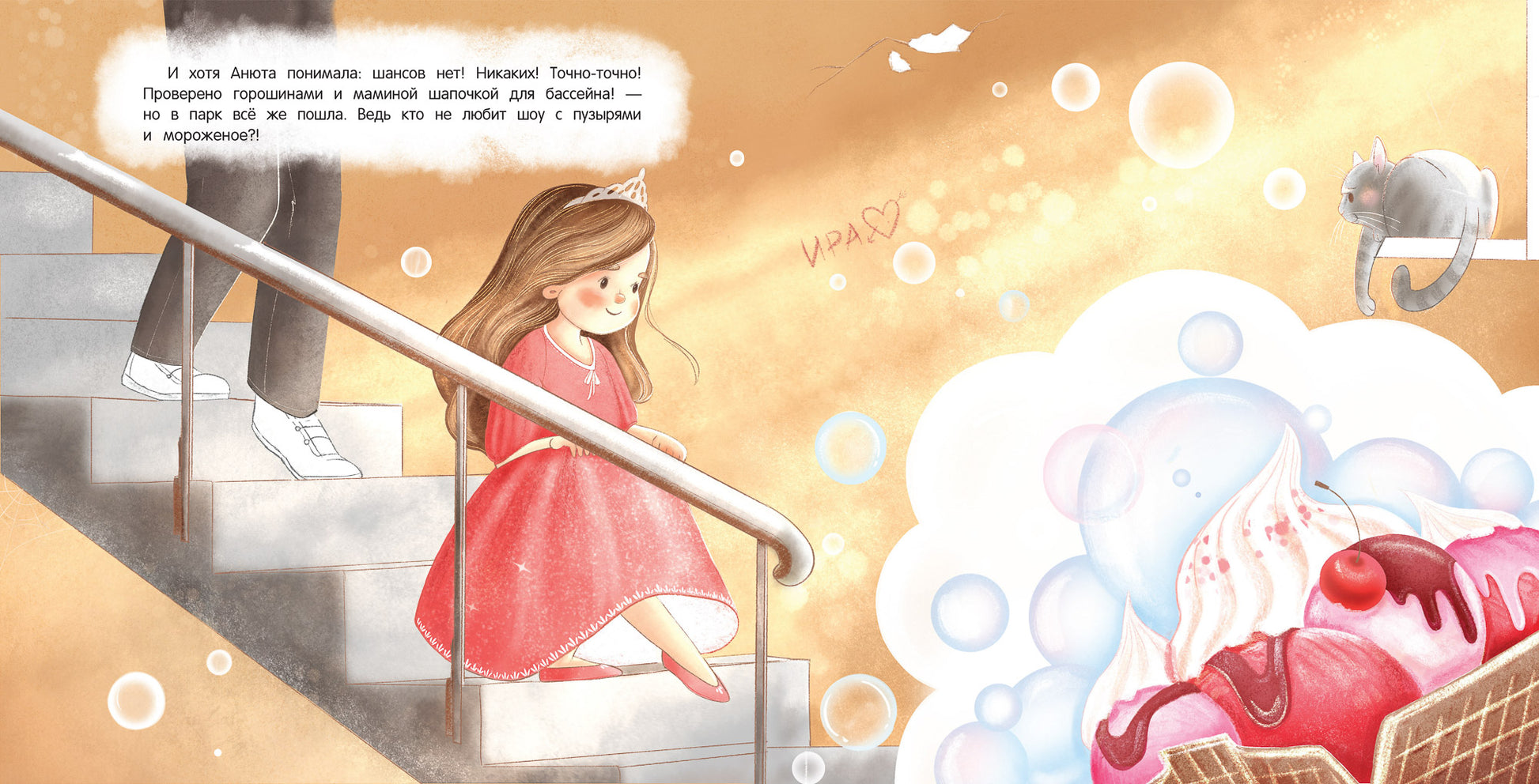 Думаете, принцессы бывают только в сказках? А вот и нет! Знакомьтесь, перед вами девочка Анюта! И пусть родители у нее не королевского рода, а вместо короны — лишь шапочка для бассейна. Зато поступки малышка совершает самые благородные! Однажды она помогает своей подруге победить в городском конкурсе, а дворовому псу Тянучке выбраться из колючих зарослей. Тогда сама Анюта и все вокруг понимают, что принцесса она не понарошку, а вполне настоящая. Пять причин купить 1Евгения Русинова — популярный современный автор детских художественных книг. 2Книга расскажет юным читательницам как благородные поступки могут сделать любую девочку принцессой. 3Крупный шрифт и небольшое количество текста позволят ребенку сделать первые успехи в самостоятельном чтении. 4Подарочный формат: твердый переплет и стильное оформление. 5Более 35 больших нежных иллюстраций.