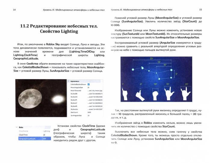 Во второй книге рассмотрены всесто-ронние аспекты создания геймплеев в иг-ровом движке Roblox Studio. Показаны спо-собы визуализации атмосферы, при-родных явлений и эффектов, твердотельное моделирование сложных объектов и устройств. На практических примерах разобрана механика и физика игрового движка.Юный читатель сам создаст колесо обо-зрения и симулятор механических часов на сервоприводе, запустит ракету в кос-мос, запрограммирует артиллерийское и лазерное оружие. А на примерах по соз-данию логических игр-головоломок прокачает свои алгоритмические навыки.После выполнения практических заданий, связанных с действием гравитации и сило-вых полей, полётом мяча по баллистиче-ской траектории, программированием управляемых объектов из реальной жизни (автомобиль, танк, самолёт), будущие про-граммисты поймут значимость и актуаль-ность школьной математики и физики.Книга является простым и глубо-ким по содержанию учебником- самоучителем.Учитесь дома!