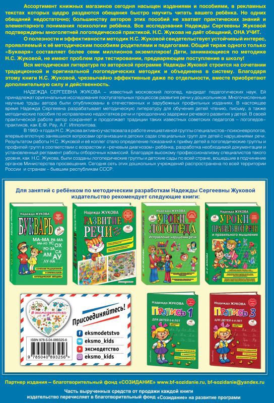 Прописи — это прекрасное подспорье для дошкольников и детей, у которых написание букв вызывает затруднения. Прописи являются приложением к знаменитому «Букварю» Надежды Жуковой, который успешно используют все родители, воспитатели и педагоги. Для удобства обучения материал прописей разделен на 3 тетради, с которыми желательно работать последовательно. В первой тетради изложены правила обучения написанию букв А, У, О, М, С, Ы, X, Р, Ш, Л, Н; во второй — К, Т, И, П, З, Й, Г, В, Д, Б, Ж, Е; в третьей — Ь, Я, Ю, Ё, Ч, Э, У, Ф, Щ.Вся методическая литература по авторской программе Надежды Жуковой строится на сочетании традиционной и оригинальной логопедической методики и объединена в систему. Благодаря этому книги Н.С. Жуковой, чрезвычайно эффективные даже по отдельности, вместе приобретают дополнительную силу и действенность.Для занятий с ребёнком по методическим разработкам Надежды Сергеевны Жуковой издательство рекомендует следующие книги:«Букварь», «Развитие речи: мир», «Уроки логопеда», «Уроки правильной речи и правильного мышления».