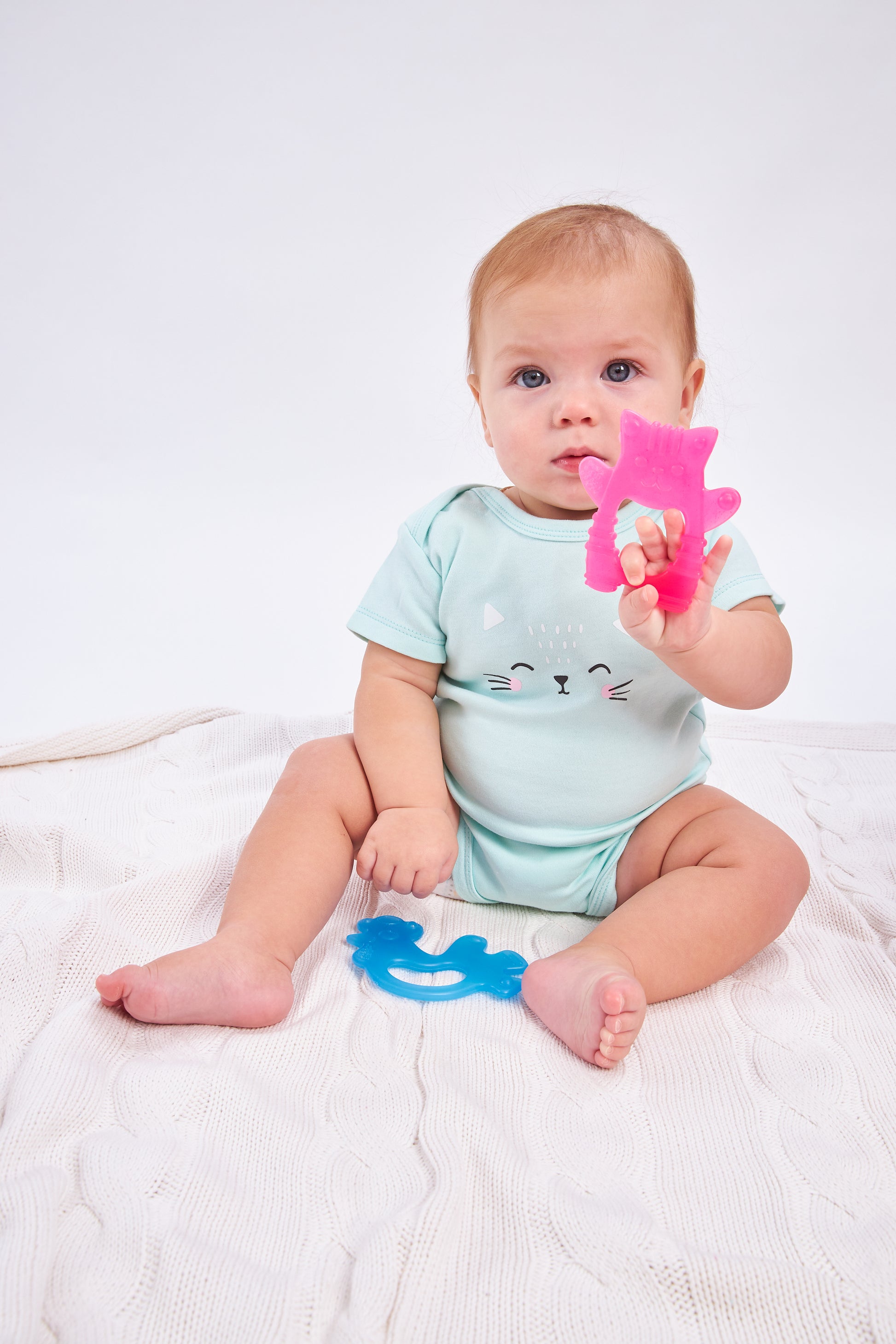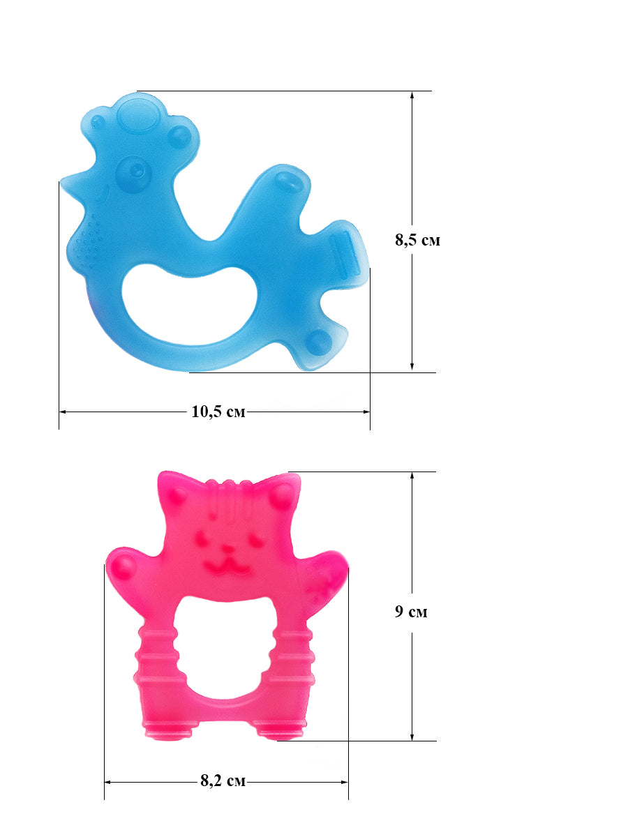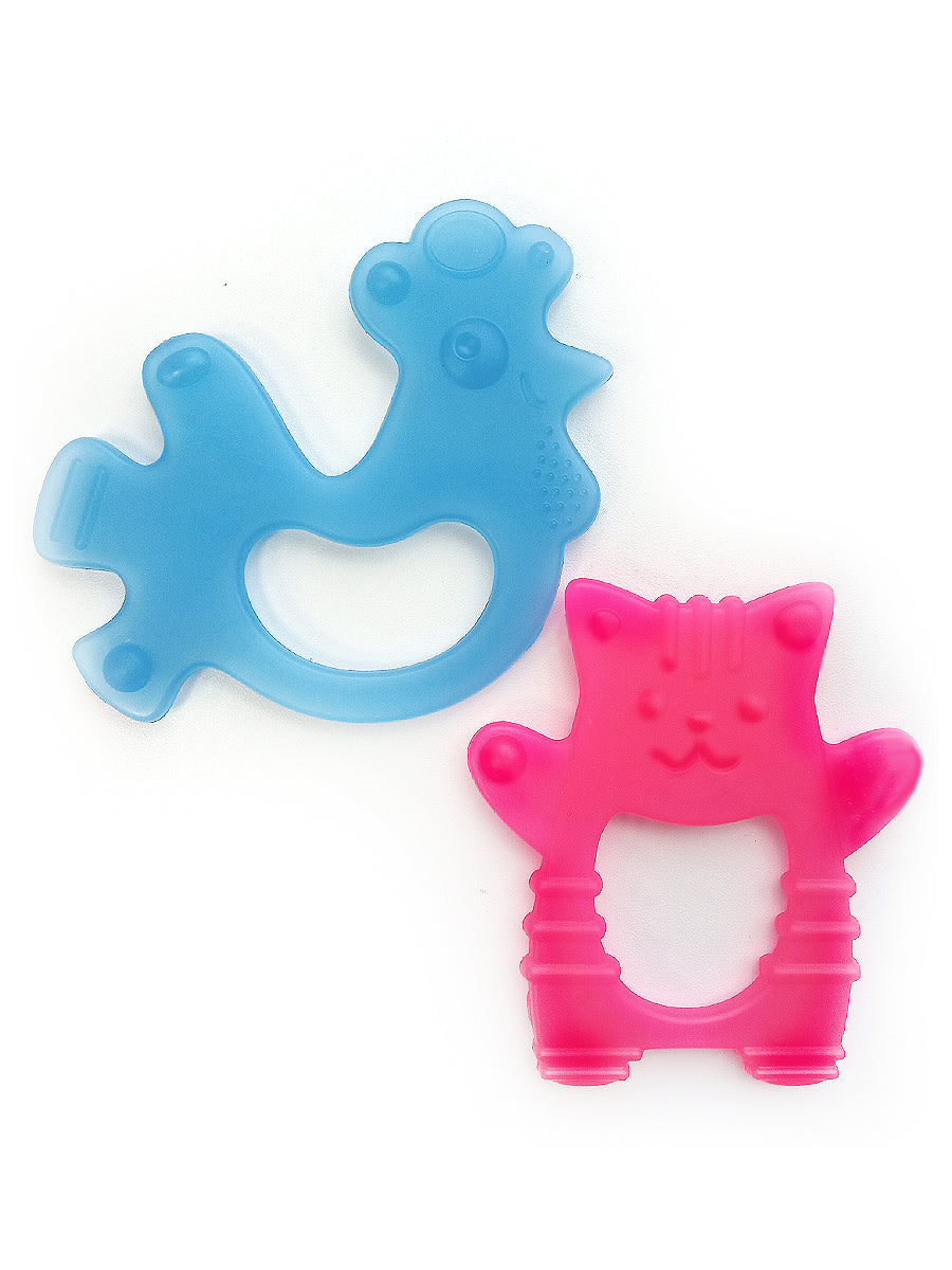 Комплект прорезыватели "Котик и Петушок" Детские игрушки Набор: «Котик» - 9 х 8,2 х 0,5 см, «Петушок» - 10,5 х 8,5 х 0,5 см. Для детей от 3 месяцев.Цвета в ассортименте: розовый и голубой или желтый и фиолетовый.