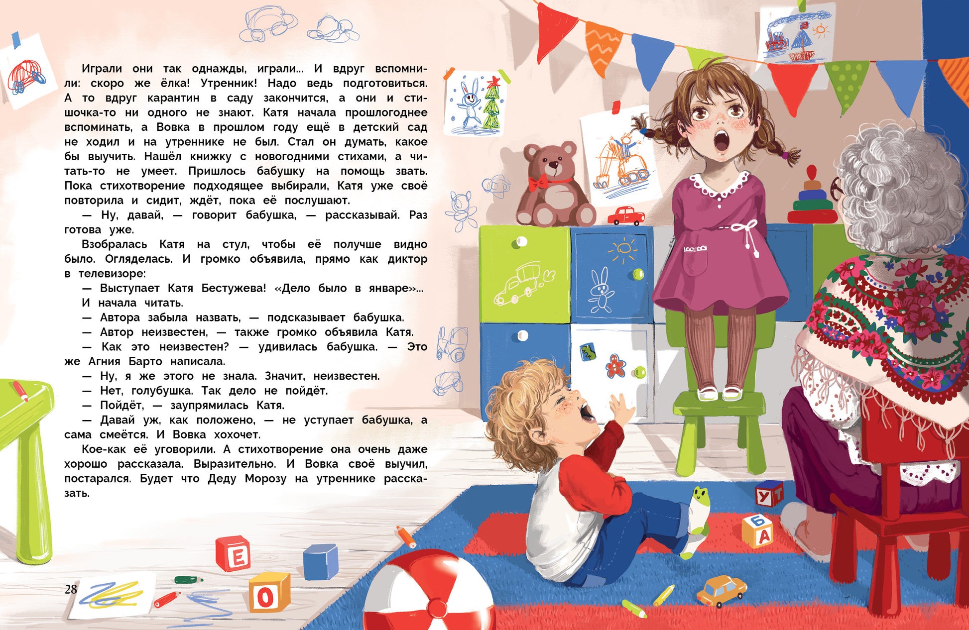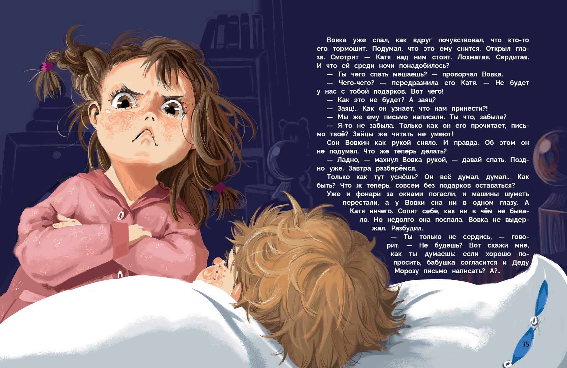 Вовка очень любит ходить в детский сад. Но его закрыли на карантин. И зима как назло долго не наступала. Из-за этой сырости даже гулять не пускают. Сиди теперь дома. Так, пожалуй, и все детство пройдет!Хорошо хоть бабушка с двоюродной сестрой Катей приехали. Вот началось веселье! Они и кормушку для птиц смастерили, и стихи к новогоднему утреннику выучили, и подарки всем подготовили, и письмо зайцам написали. Да-да, зайцам! А ты думаешь, что подарки под елку Дед Мороз приносит? Теперь остается узнать - умеют ли зайцы читать...Для детей дошкольного возраста. Пять причин купить 1Новый бестселлер для детей от Татьяны Рабцевой, автора книги «Вовка идет в детский сад». 2Яркая и веселая история для чтения и обсуждения с детьми. Забавные персонажи и увлекательный сюжет. 3Чудесные образы для персонажей книги придумала художница Екатерина Ефремова. 4Великолепное полиграфическое исполнение на плотной, высококачественной бумаге. 5Яркое красочное издание станет отличным подарком для ребенка.
