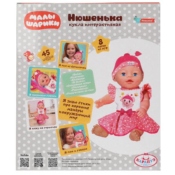 Пупс озвучка МАЛЫШАРИКИ Нюшенька 40см, пьет, пис, закр глазки, 15 песен, 4 акс КАРАПУЗ в кор.8шт