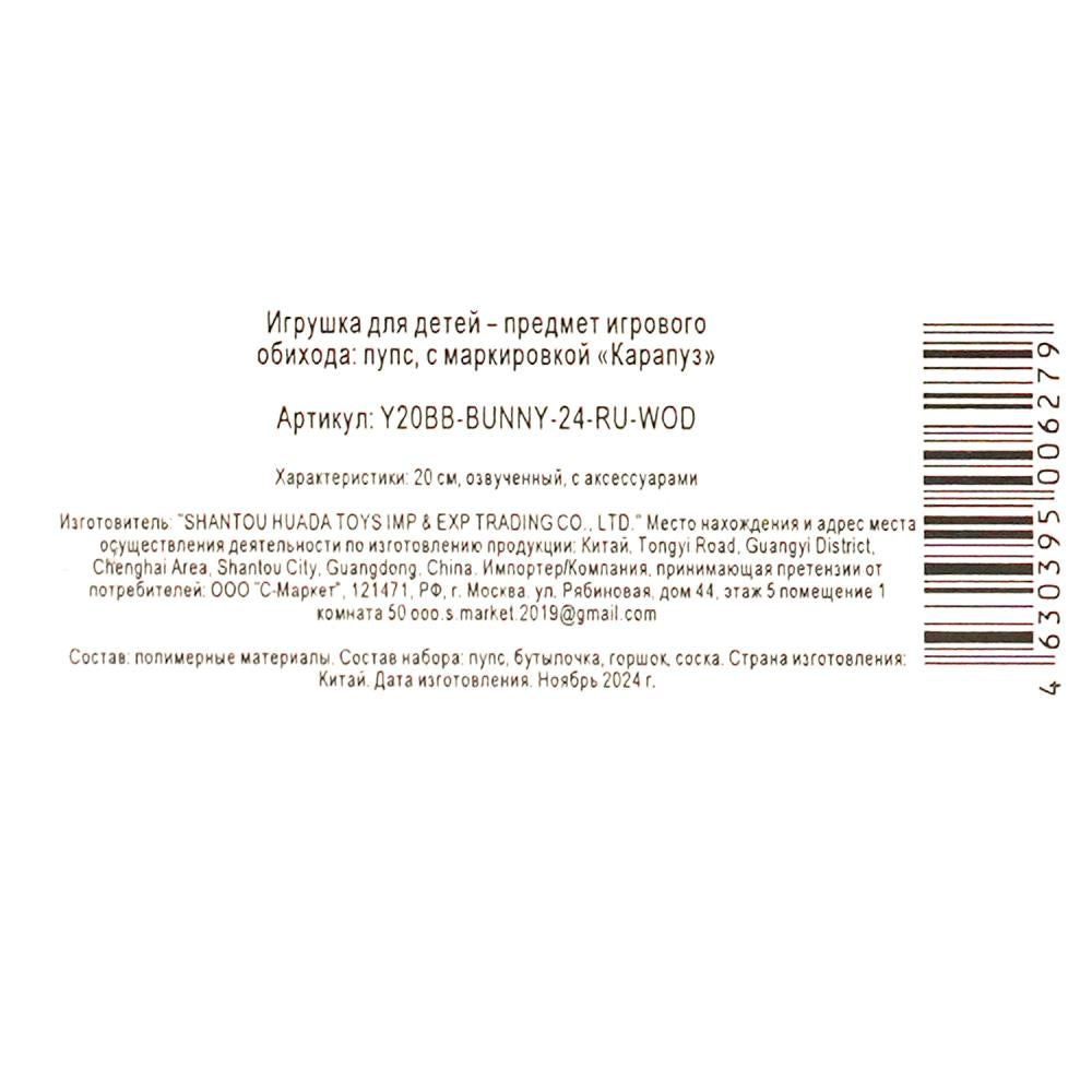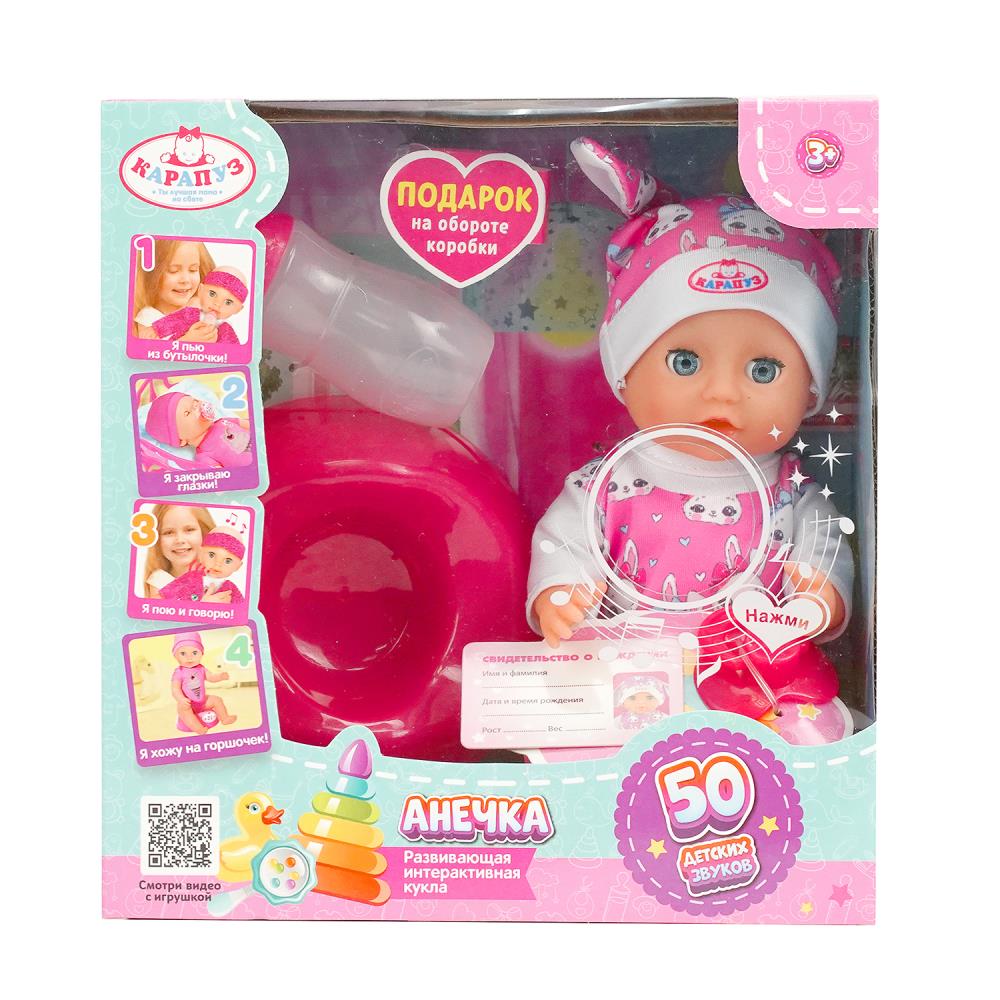 Игрушка "Пупс озвучивает 20см, пьет, пишет, закр. глазки, 3акс КАРАПУЗ в кор.24шт". Размер: 0,13249.
