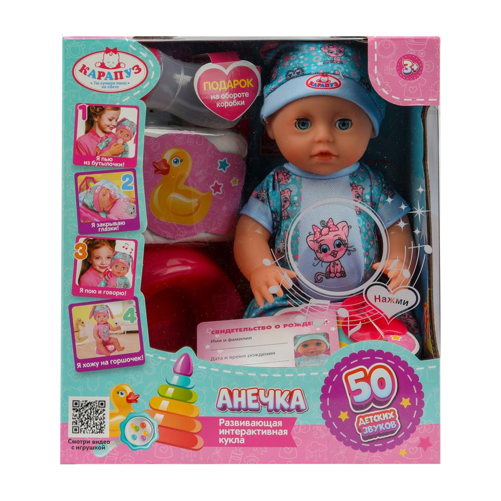 Игрушка "Пупс озвучивает 25см, пьет, пишет, закр. глазки, 4акс, 50 звуков КАРАПУЗ в кор.24шт". Размер: 0,178.