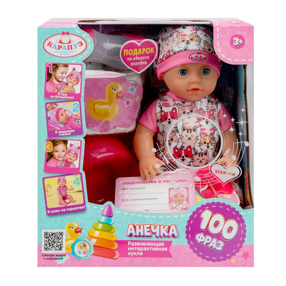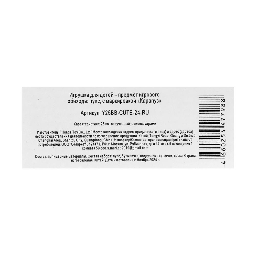 Игрушка "Пупс озвучивает 25см, Шаинский музыкальный пьет, пишет, закр. глазки, 4акс, 100 фраз КАРАПУЗ в кор.24шт". Размер: 0,178.