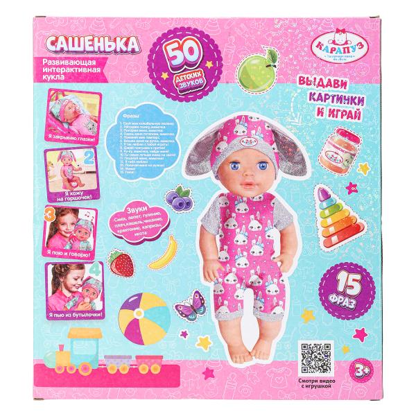Пупс озвуч 30см, пьет, писает, закр. глазки, 4акс, 50 звуков КАРАПУЗ в кор.12шт