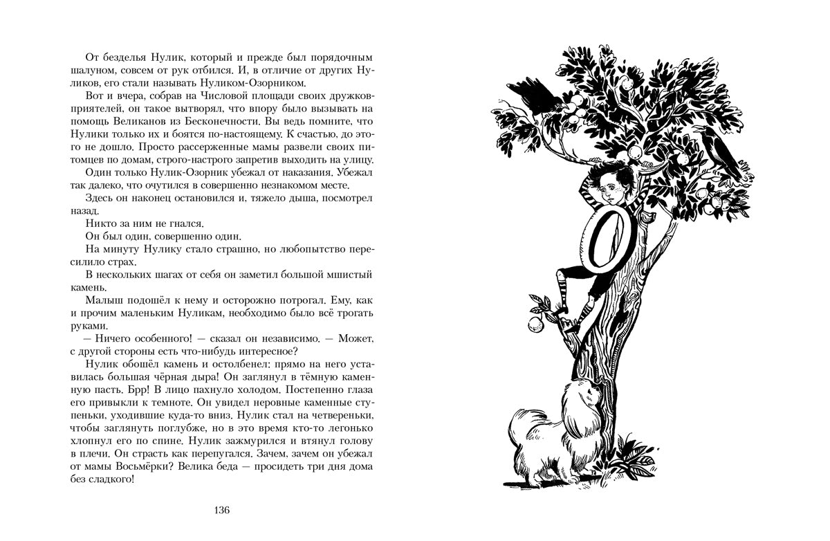 Маленький, но очень любознательный житель страны чисел Нулик приглашает в захватывающее путешествие по миру самой точной из наук! Вам предстоит провести три ярких дня в Арифметическом государстве Карликания, раскрыть тайну Чёрной Маски из Аль-Джебры и стать, подобно Нулику, настоящими мореходами во время плавания по геометрическим морям и океанам. Простые и десятичные дроби, отрицательные числа, степени и уравнения, объёмы тел и площади фигур — всё это и многое другое становится понятным и невероятно увлекательным, рождая подлинный интерес к математическим наукам.