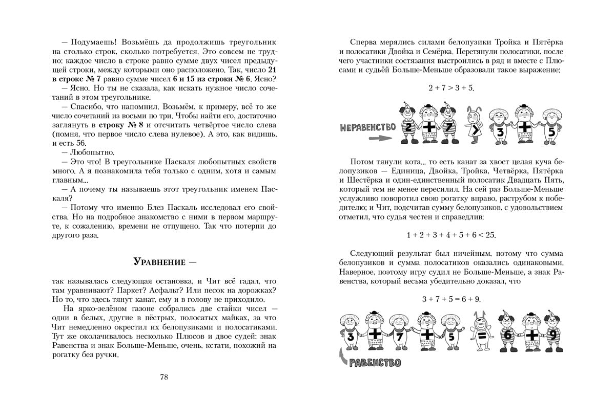 Handling time: 14 days Ученик начальной школы Чит забрёл в необычный лабиринт — лабиринт чисел. Сколько же ему предстоит узнать о математике! Сама Арифметика поможет ему выяснить, что такое арифметические знаки, научит составлять уравнения и возводить числа в степень.