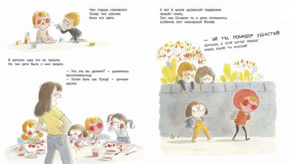 Handling time: 19 days Оскар всё время краснеет... Когда читает стихи перед классом, когда ныряет в бассейн, когда садится рядом с Сюзанной и даже когда другие замечают его красные щёки!Ранее в издательстве «Поляндрия» выходили книги с иллюстрациями Анник Массон «Мамин Ключ» и «Тайна дедушкиного огорода».