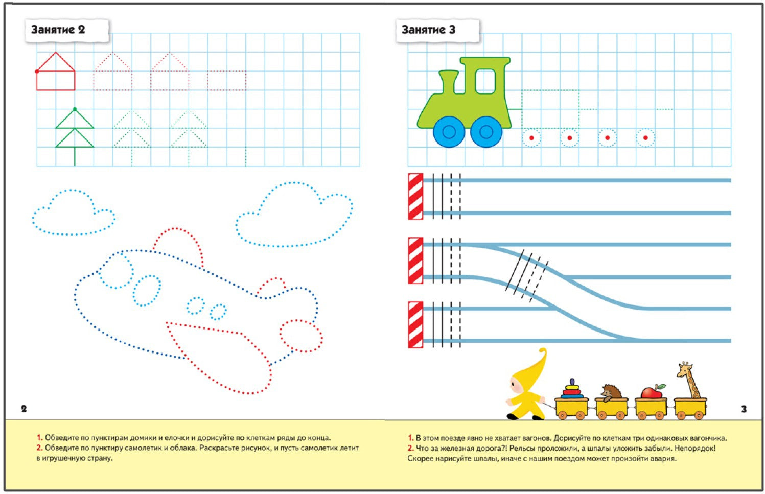 Писать красиво нелегко. Этот навык необходимо развивать постоянно. Просто выводить палочки и крючочки малышу неинтересно. В рабочей тетради малышу предлагаются увлекательные задания: помочь проехать машине, не выехав ни разу на обочину, «прицепить» поезду вагоны, «проложить» шпалы на железной дороге.