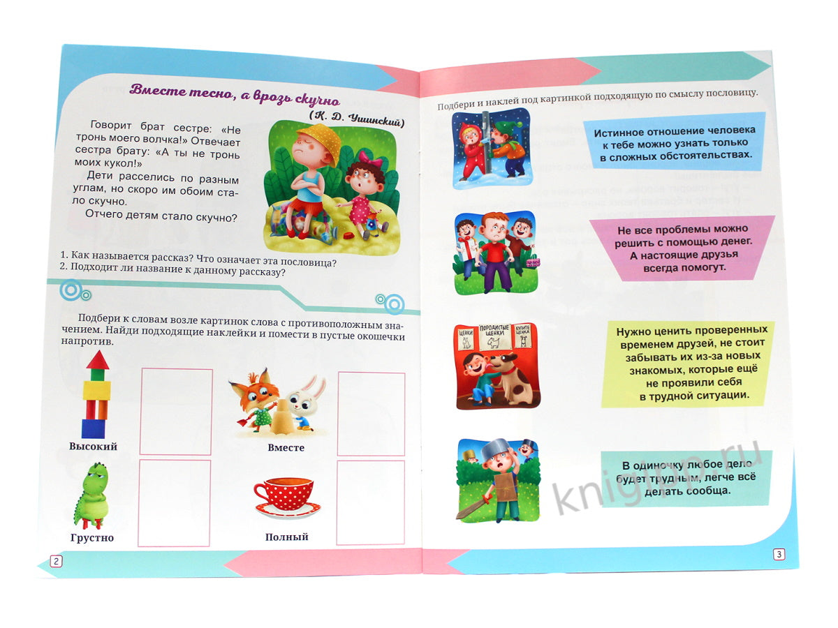 РАЗВИВАЮЩИЕ ЗАДАНИЯ с наклейками. ЧИТАЕМ, РАЗМЫШЛЯЕМ, ПЕРЕСКАЗЫВАЕМ