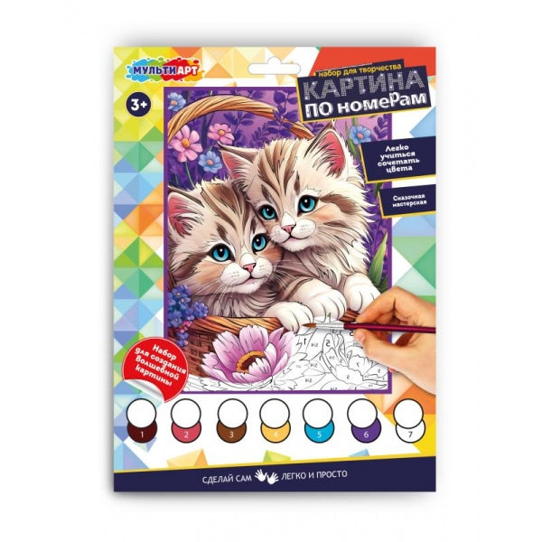 Раскраска по номерам 17х23 см котята в корзинке МУЛЬТИ АРТ в кор.50шт