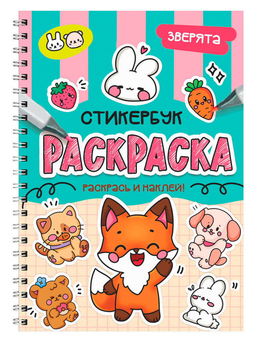 РАСКРАСКА-СТИКЕРБУК. ЗВЕРЯТА