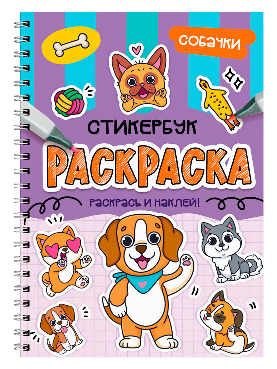 РАСКРАСКА-СТИКЕРБУК. СОБАЧКИ